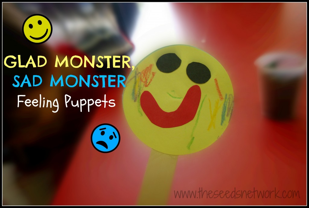 We attached the two faces together (back to back) and adhered it to a large craft stick. So they can easily flip it from happy to sad. We then had some time for the children to explore their feelings through a puppet play!